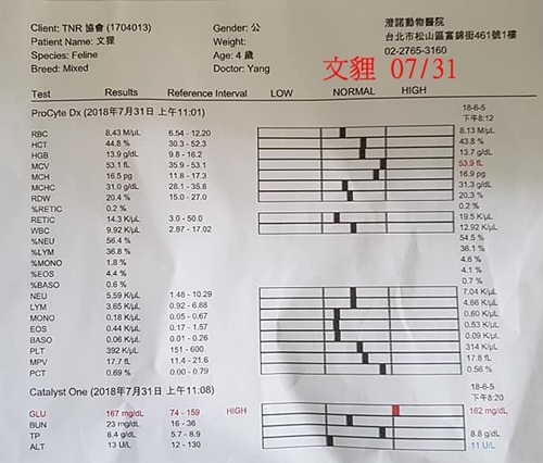 文貍口炎後口良好,只剩右下方有處紅點,今天血檢數值都良好,因為到院緊張血糖167(上次162)。