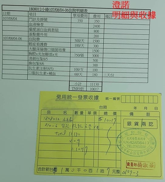本筆醫助是小綠在澄諾醫院醫療住院及亞太的看診費用,此虐貓案已有20隻貓咪受害,每隻貓咪的醫療費用都相當可觀,全部加起來金額真的很龐大,希望大家可以一起幫忙,萬分感恩。