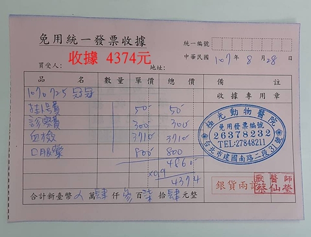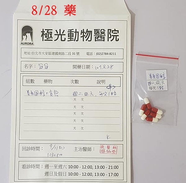 為了使冠冠的口炎及腎衰能得到有效的控制與改善,於2018年8月28日帶他至極光動物醫院進行詳細檢查,因紅血球偏低,所以除了每天服用類固醇、免疫抑制劑及皮下注射,還要施打造血針,並須要再回診檢查,口炎的疾病是需要很長期的醫療,希望大家可以幫忙冠冠,感恩。