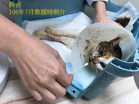 主題: 口炎腎衰及肝炎的胖吉 申請者姓名: 臺北市支持流浪貓絕育計劃協會 花色: 申請日期: 2018-09-10 02:12:00 申請者部落格: 申請者臉書網址: http://tnrtw.org 所在縣市/合作醫院: 台北市/極光動物醫院 治療費用: 3186元 需求人數: 8人 已結案 (2024-06-01 13:06:13) 報名人員: AHC(已付款)、丁丁(已付款)、派派(已付款)、張香香(已付款)、無名氏 x2(已付款)、酷比(已付款)、酸菜包(已付款)、 候補人員: 動物病情說明: 胖吉是106年台中廢棄眷村救援案的貓咪,