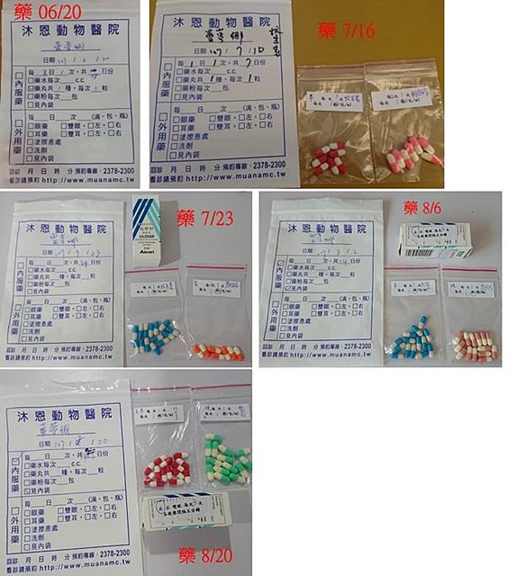 雷夢娜原是6/25回診,但加上雷夢娜會共有4隻貓咪, 於是詢問醫生可否有哪隻貓咪可調整其他時間,醫師評估後,今日告知雷夢娜及拐拐可先拿藥,之後再安排時間回診。