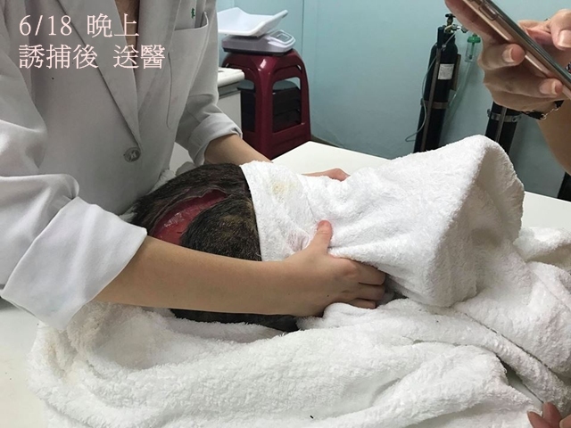 6月18日在餵養人的協助下,終於捕捉到妙咪,協會人員立即帶他送醫救治。