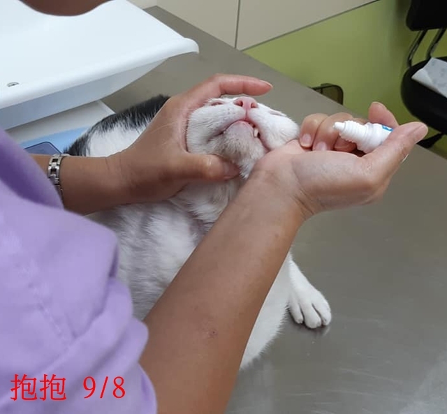 抱抱在每日的服藥氣霧後,鼻涕情況改善很多,因擔心他抓傷自己的頭套領巾也可以取下,讓抱抱現在更開心了,可愛的抱抱十分乖巧親人,希望他的健康可以很快穩定。