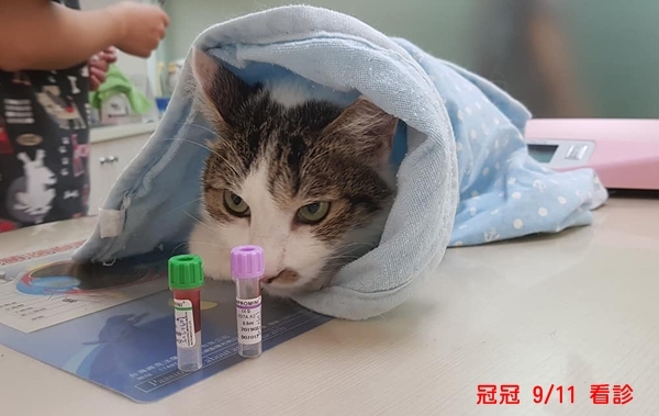 為了使冠冠的口炎及腎衰能得到有效的控制與改善,於8月28日帶他至極光動物醫院進行詳細檢查,因紅血球偏低,所以除了每天服用類固醇、免疫抑制劑及皮下注射,還要施打造血針,並須要再回診檢查,口炎的疾病是需要很長期的醫療,希望大家可以幫忙冠冠,感恩。