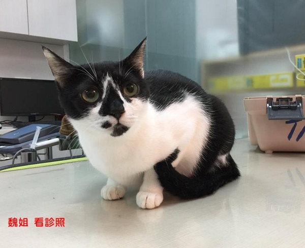魏姐是志工從五股收容所帶出的貓咪,當時經醫生檢查患有貓瘟,嚴重的嘔吐,下痢及嚴重脫水,經過一段時間的治療,魏姐挨過貓瘟病毒,並完成結紮,原是住在苗栗安養之家,但因貓瘟後遺症造成的慢性呼吸道感染讓她淚眼鼻涕不斷,須要常回診治療,因此將她帶至台北貓屋住下,以便就醫。