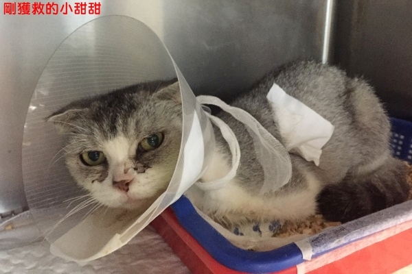 小甜甜是104年6月間協會接獲網友通報,在中和地區救援的被棄養品種貓咪,當時她的情況極差,皮膚、精神狀況都很不好,協會志工將她送醫檢查,有相當嚴重的鼻氣管炎,住院治療一段時間,等狀況穩定些就將她帶回安養之家照顧。