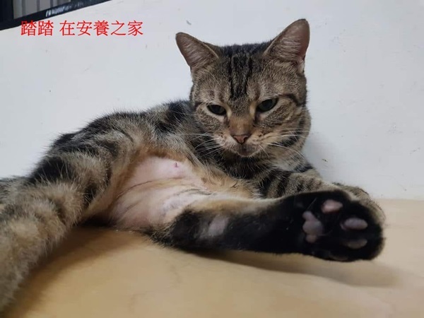 踏踏是2014年志工在五股收容所看到的被遺棄的貓咪,當時她隔著籠子不停的磨蹭,很撒嬌的對著志工喵喵叫,經志工詢問所方人員,得知踏踏是因為癲癇而遭到主人棄養,志工於心不忍,便將她接出送醫院治療。