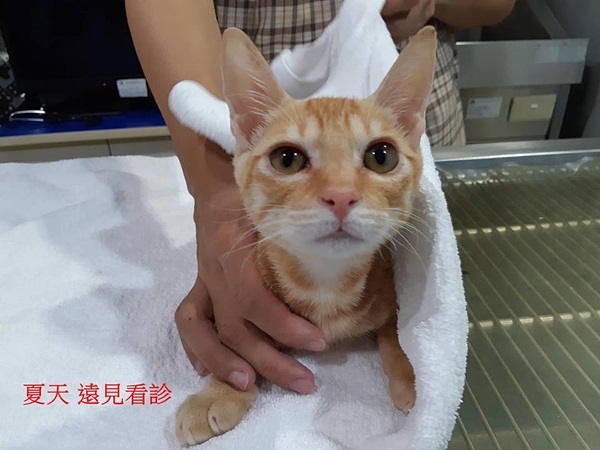 夏天被發現時捲曲在垃圾上,左眼無法睜開,志工用網子網住,趕緊送醫檢查,除了鼻氣管炎外,還有嚴重的下痢,食慾不振。
