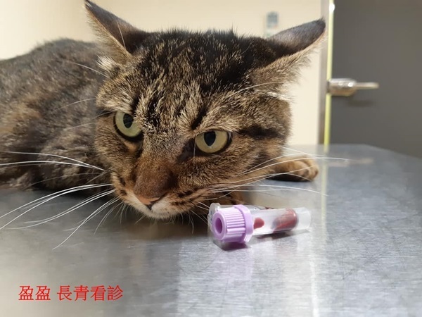 盈盈是台中救援案的貓咪,被救援前可能歷經過全口拔牙,口腔呈現嚴重的發炎,並有多處傷口癒合不良,血液檢查有肝指數上升與貧血的症狀,並合併呼吸道感染狀況,當時身體十分虛弱。