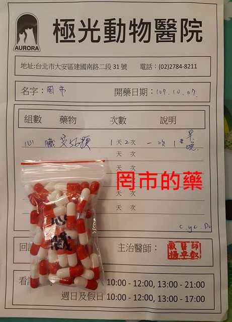 罔市經歷過此番重大醫療手術,須要非常注意她的心臟情況,除了定期至專心醫院回診量血壓、拍X光照片、心電圖超音波等詳細檢查,及因每天須服用心臟藥物,所以每個月都要至極光動物醫院取藥。