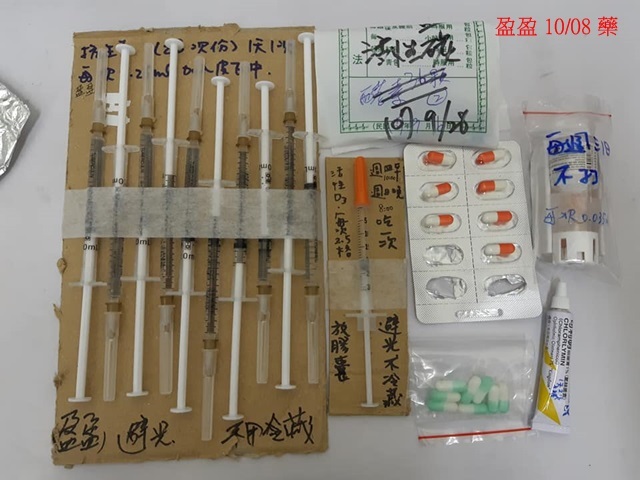 6. 活性鈣D3:醫院已代為抽好一支胰島素針,須避光不用冷藏,每周四早上10:00及每周日晚上8:00吃一次,每次2.5格放入膠囊中餵食。