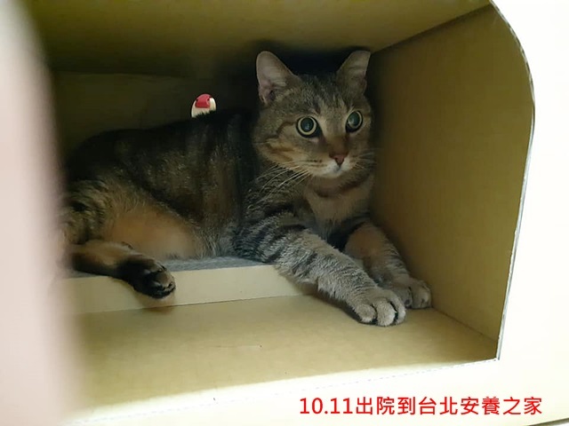 雖然jasmine傷口已無問題,但為多觀察幾日以確保他的健康,所以先暫住台北安養之家,jasmine 很喜歡工作人員特別為他準備的超大毛毛睡窩,躺在裡面開心踩踩的模樣好可愛,目前食慾精神都很好。