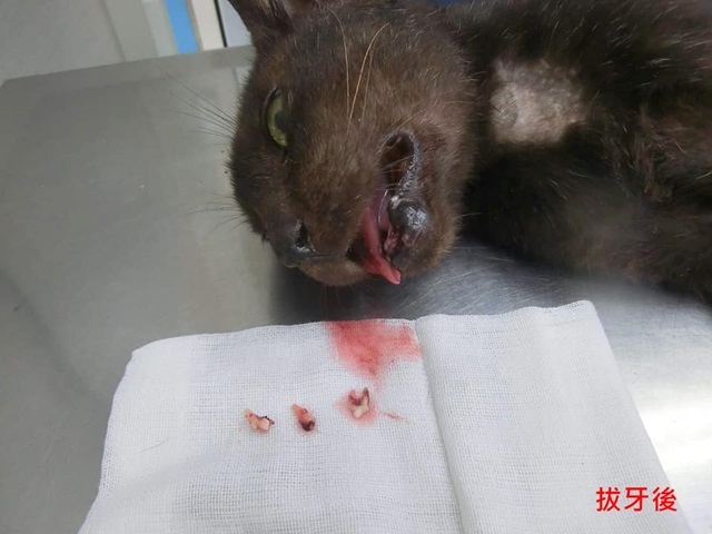 大黑公貓經過血巴東虫治療、牙周手術拔牙、熄肉切除及一段時間的休養,至出院前幾日食慾精神都正常了,於是將他帶回原生活地交由餵養人繼續照護。動物近況說明: 10月15日狀況穩定,黑貓帶回交由餵養人照顧,10月16日沐恩動物醫院通知嘴巴內瘜肉切片送檢出爐,確定為惡性腫瘤。餵養人決定安寧照顧,讓貓咪安穩渡過餘生。