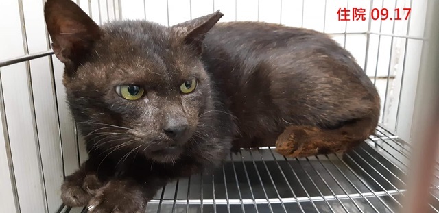 2018年7月貢寮愛媽通報協會,告知餵食區內出現了這隻未紮的大黑公貓,非常親人,疑似被人刻意丟棄至她們餵食區域,於是誘捕貓咪,由友善動物計程車司機協助運送帶至醫院,經醫師檢查,除了愛滋陽性、牙齒狀況不佳並口腔有熄肉,因此結紮同時進行拔牙,在術前的血檢,因貧血情況使醫師懷疑貓咪有血巴東虫問題於是送驗,檢驗結果確定貓咪患有血巴東虫,於7/19開始進行治療血巴東虫。