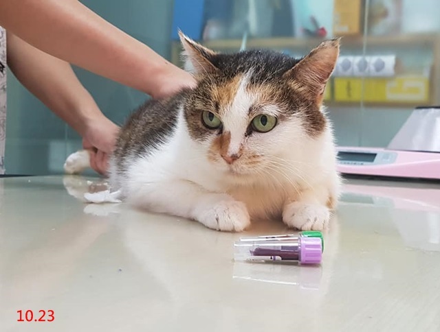 胖吉現在模樣圓滾滾,和當時在眷村生活時的病弱模樣判若兩貓,胖吉有點愛鬧小彆扭的個性讓大家非常喜愛她,照護員每天都遵守醫囑餵胖吉吃藥打皮下,希望胖吉下次回診她的健康會更有進步。