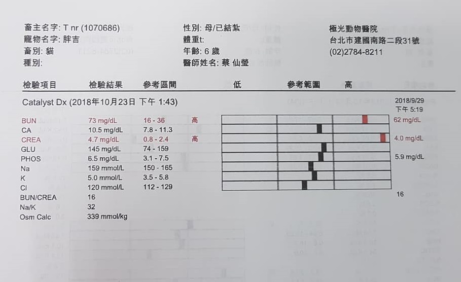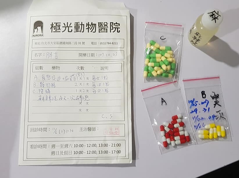 本筆醫助是胖吉於10月23日至極光醫院回診,進行血檢、測量血壓,打造血針、皮下輸液與診費、藥品、藥用洗劑等費用,希望大家可以幫忙胖吉妹妹,非常感謝。