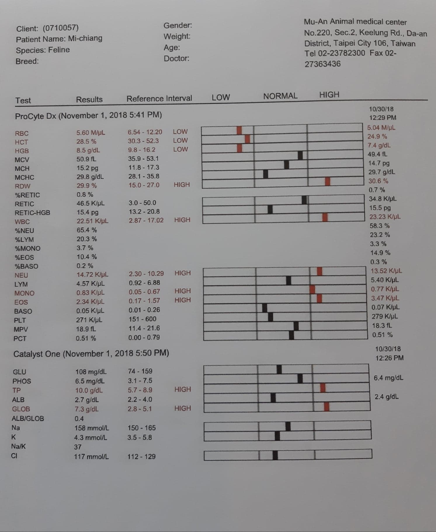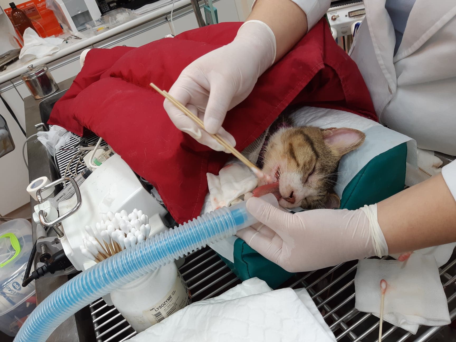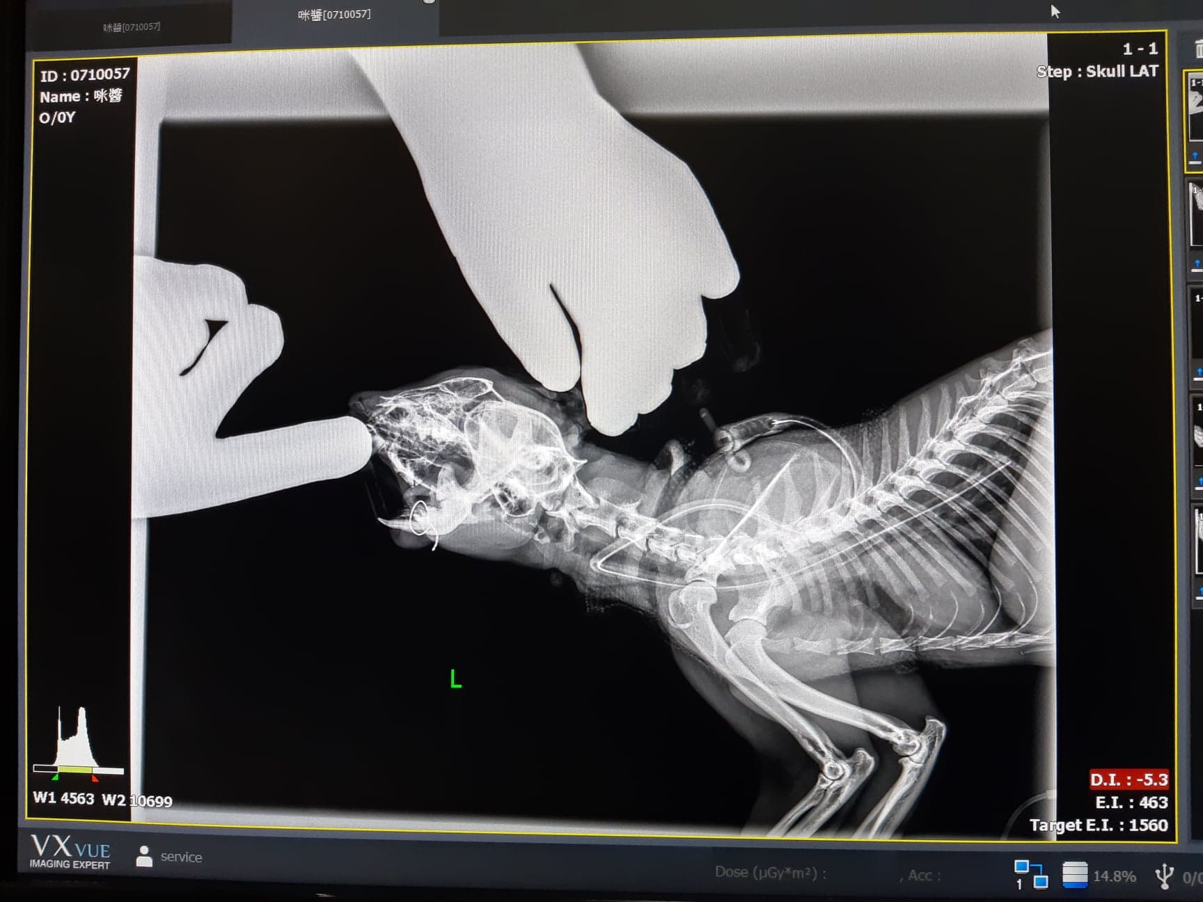 住院期間還發現寄生蟲 導致血便跟體重過瘦 且牙齦露出一點牙齒原以為是斷了 照X光後發現是整個牙被撞進牙齦裡 進行下顎手術時把這顆牙拔出 整個辛苦的治療過程 貓咪(咪醬)皆展現驚人的生命力和求生慾 且咪醬極度親人 深獲醫護的喜愛 更讓人心疼流浪貓咪受傷的遭遇