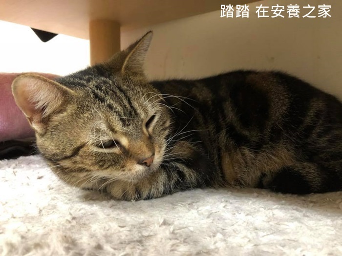踏踏現在住在協會的安養之家,每日按時服藥,現階段與正常貓無異,從當時瘦巴乾扁模樣變得非常圓潤可愛,希望她的健康狀況可以一直很穩定。
