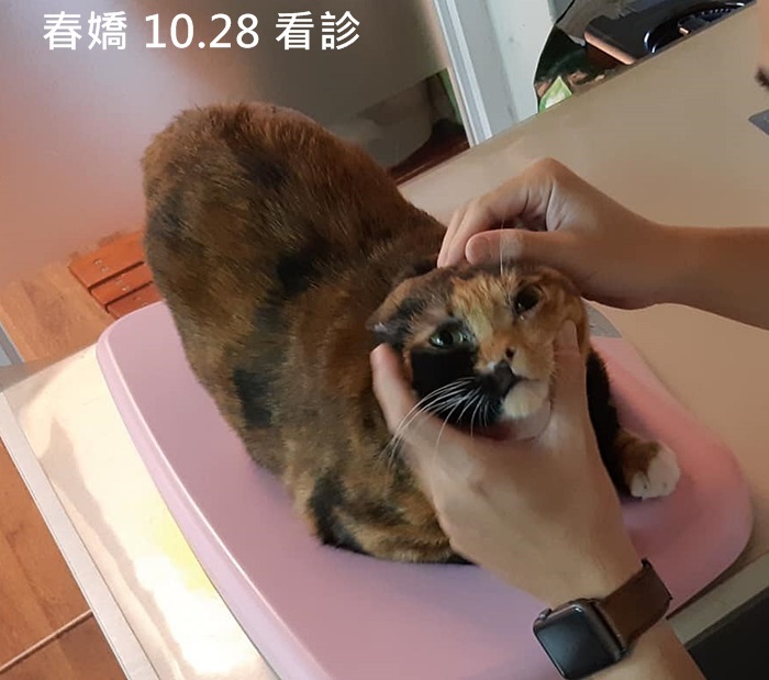 10月中照護員發現小甜甜淚眼鼻涕很多,於是帶她前往極光看診,幸好醫師說可能只是天氣轉涼的影響,平時吃的心臟用藥就有針對鼻子用藥,所以也不用另外開藥了。