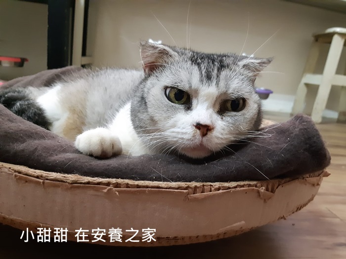 小甜甜是協會接獲通報救援的被棄養品種貓咪,救援後住院近5個月後才狀況穩定出院,但在去年做心超檢查出她有肥沃性心肌病,心臟很大顆,日後心臟將愈來愈大,心房愈來愈大,水愈來愈多造成肺水腫吸不到氣,或是小血塊,因此需要定期至醫院進行回診做心臟超音波、量血壓、聽心音、驗血等等的檢查,照護員並需記錄她的呼吸心跳。