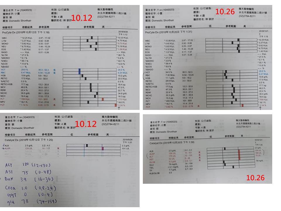 因ALB與BUN的升高,可能都與水份不足有關,水份不足也會影響食慾,所以重新開始打皮下輸液,看下次回診的指數、小賓的進食有否改善。