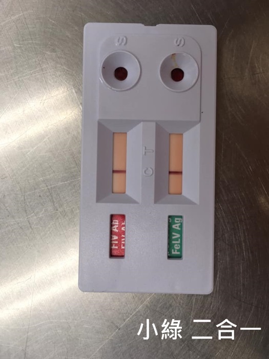 至今在照護員的悉心照護下小綠長胖長大很多,也和年齡花色相仿的里長弟弟成為好朋友,小綠打預防針同時進行了二合一檢查為陰性,另做血檢,檢查結果都正常,希望小綠弟弟能順利找到好人家。
