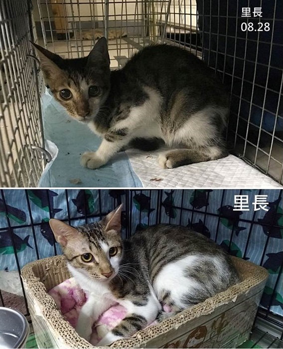 因協會附近已無未紮貓咪與小貓,里長弟弟應是被異地野放,他餓了許多天,狼吞虎嚥,看來健康狀況無大礙,剛來時的里長弟弟有點怕生,經過一段時日發現這邊的人類都非常疼愛他,漸漸變得乖巧親人。