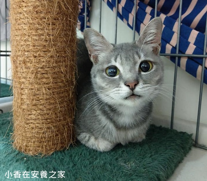 小香住進安養之家,因先前太為虛弱,照護員們都更特別悉心的照顧,一段時間後小香的模樣漸漸好看,毛色也變得均勻亮麗,是非常迷人的藍灰小美貓,一張我見猶憐的臉蛋,讓人更是心疼喜愛,對照她之前流浪的模樣真是天壤之別,照護員們每日給小香吃營養品幫她養壯身體,希望小香完成結育後,能夠健健康康、也能找到好人家過幸福日子。