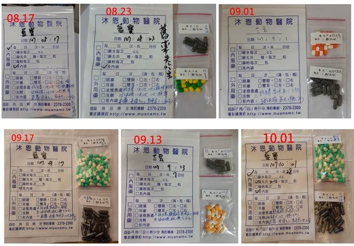藍寶近日鼻涕增多且皆為濃鼻涕,經沐恩林醫師同意,依照先前醫院提供之病歷開相同的藥給藍寶服用。