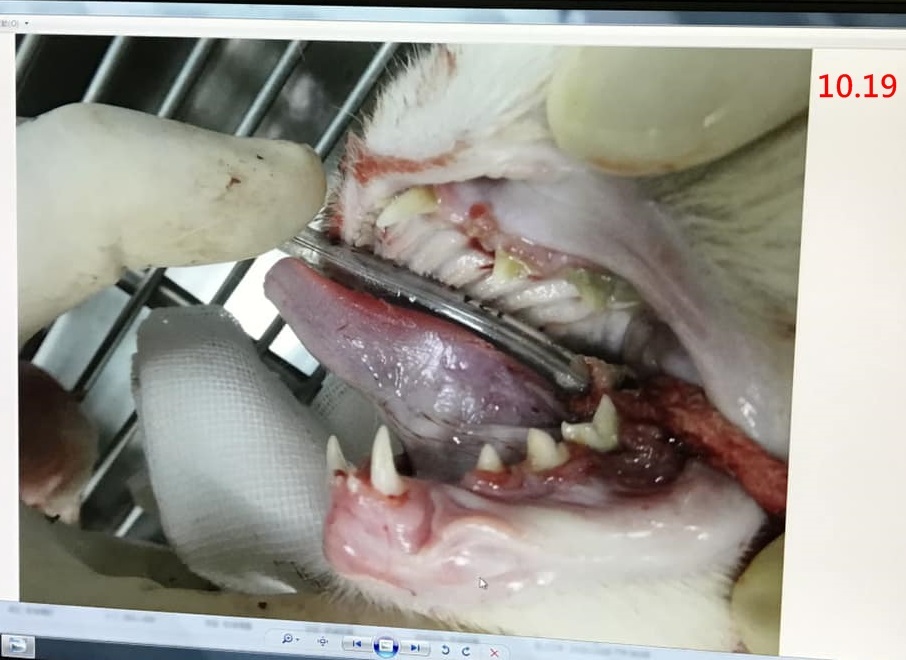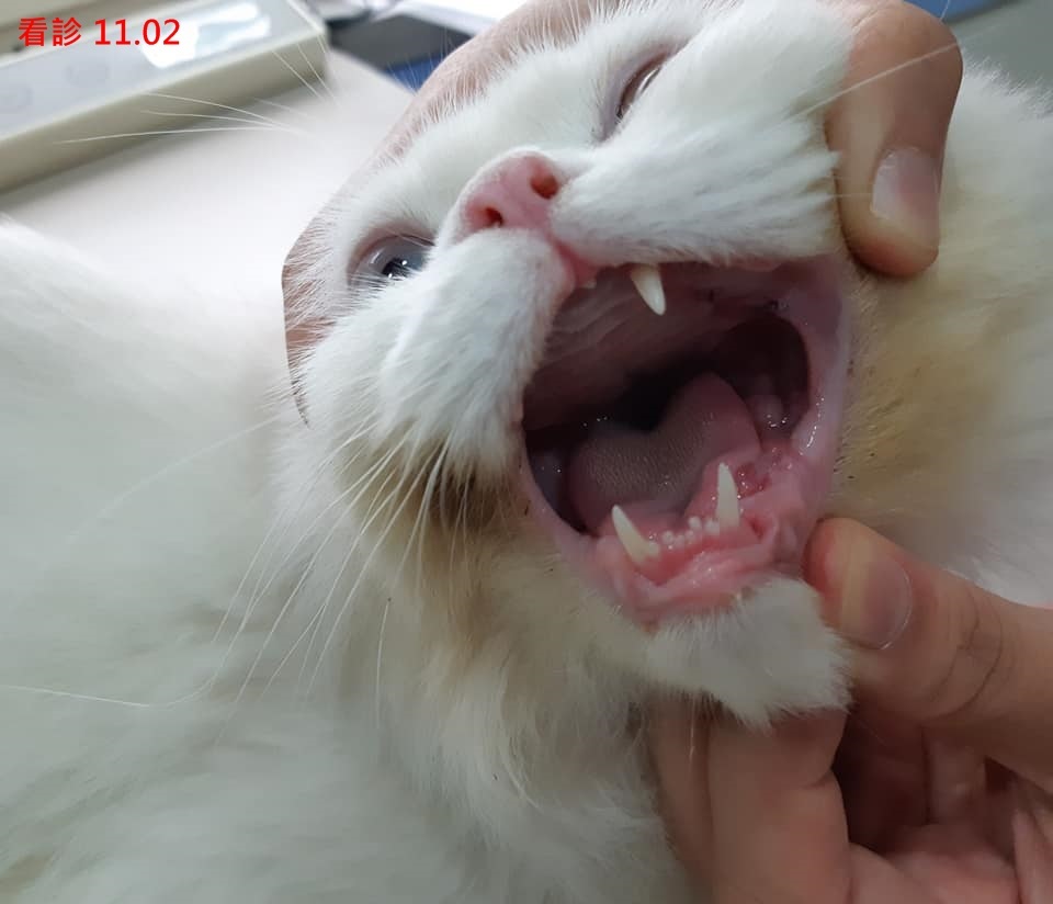 10月中工作人員發現可夢的牙齦很紅,便安排至維康醫院看診,醫師診斷可夢是貓破牙細胞再吸收病害(FORLs)。