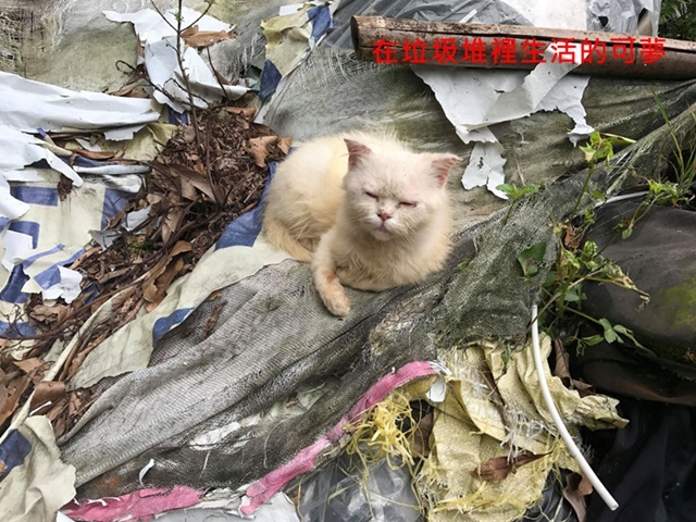 但在骯髒雜亂環境中生活已久的可夢,原本應是白色的長毛幾乎都是黃色的,身上沾滿沙泥、渾身跳蚤,狀況非常不佳,於是協會人員將她帶回就醫治療。