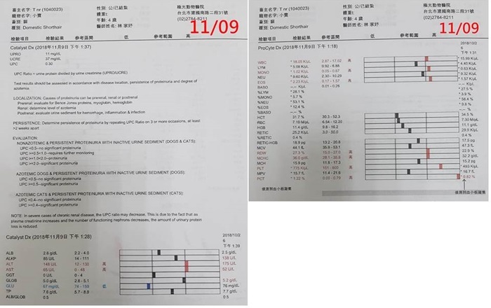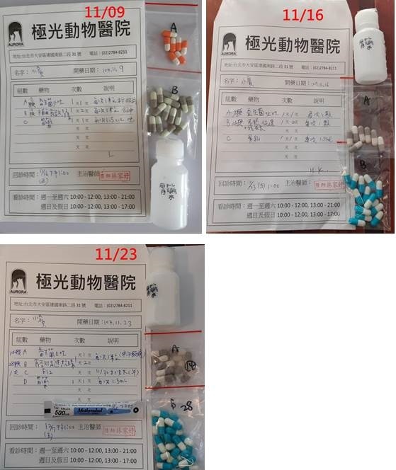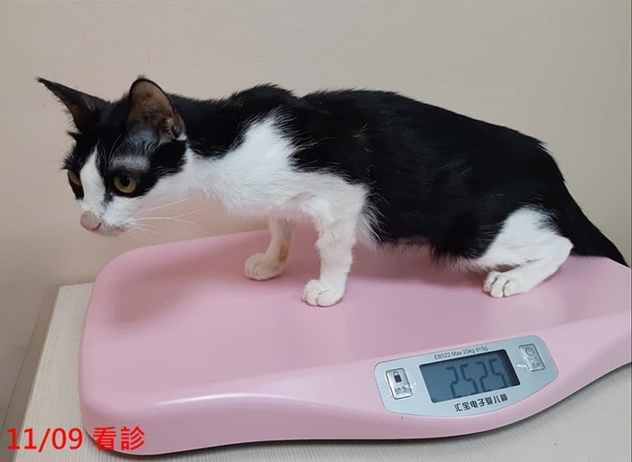 原本小賓的健康有慢慢提升到一個逐漸進步的狀態,回診的間隔時間已拉長,但在11月時因吃得較少,體重又開始往下掉,讓大家很擔心,也因此回診變得較密集並進行尿檢,以確定是否有感染造成他食慾降低,幸好檢查結果並無大礙,在調整用藥後也有明顯的改善了。