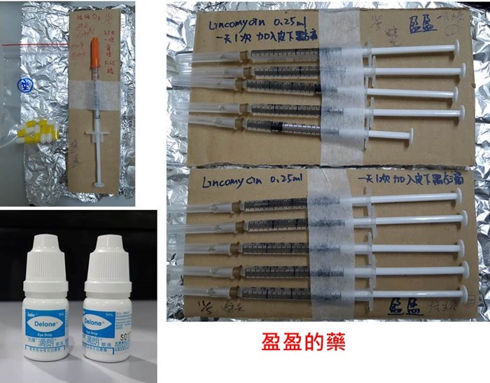 盈盈的口炎需要持續打類固醇針、抗生素針治療,又因磷指數高需要吃降磷藥,擔心造成副甲狀腺亢進引起軟骨症,必須開始服用活性鈣、每天施打皮下注射。