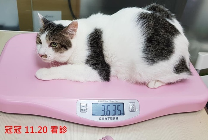 冠冠原本是協會辦公室附近的食客貓咪,每天都會跑來辦公室外等候放飯,他的食量很大,但體型卻與食量不成正比,怎麼吃都還是小小瘦瘦的,這讓協會志工不禁擔心他是否有什麼疾病,於是將他誘捕帶至醫院做詳細檢查。