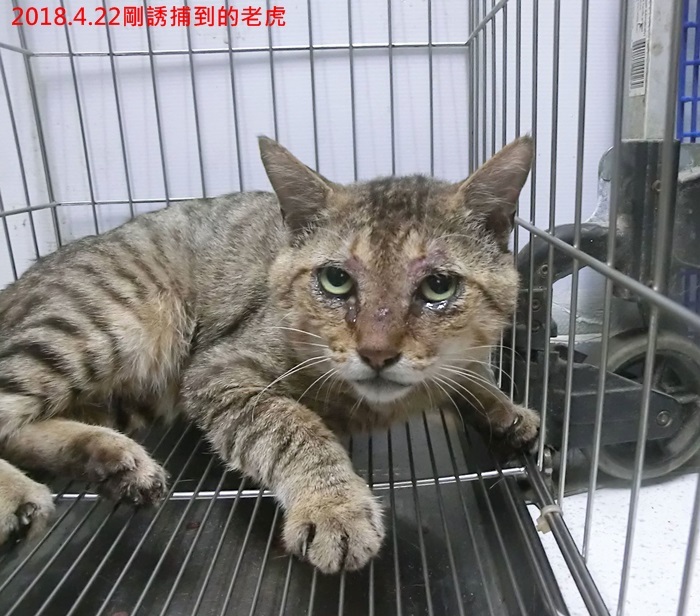 今年4月間工作人員發現老虎最近淚眼嚴重、走路跛行,於是連續設籠三天,終於在4月22日進籠了。