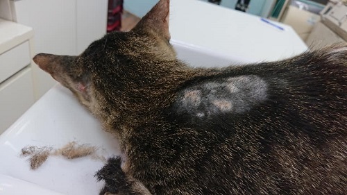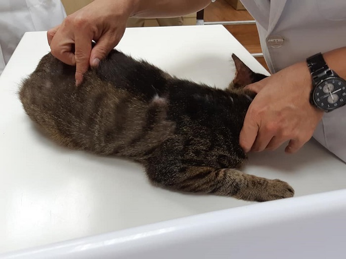 妙咪住院治療近二個月,經歷兩次縫合手術,傷口才逐漸復原,並於8月16日出院,協會將他接回到安養之家住下,在10月初協會照護員發現妙咪左耳後方有傷口,因之前妙咪身上有多處傷口,擔心是舊傷未癒合,因此約診檢查治療。