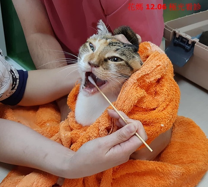 花媽是來自台中眷村救援案的貓咪,當時她生活的地方環境極為惡劣,飲食也相當差,生病時也沒有得到適當即時的醫療,種種情況導致花媽健康情況不好、非常瘦弱、持續腹瀉,協會帶她送醫檢查,除了體重過輕,還有嚴重的貧血、免疫性肝炎、口炎。