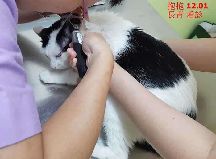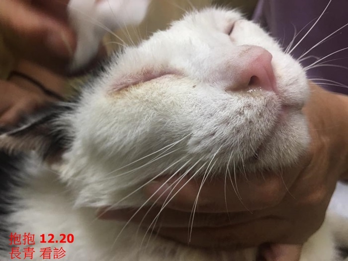 後來抱抱自2018年8月起至長青醫院看診,醫師仔細檢查後,診斷抱抱脖子皮膚已無異狀,但耳朵耳垢多,應是耳朵癢想抓耳朵,並非是皮膚問題,因此開了耳藥,鼻涕淚眼方面的問題也重新調整用藥,至今抱抱的脖子皮膚已好、也減少抓癢情況,鼻涕淚眼情況也有好轉,但因抱抱在被救援前是病毒感染的嚴重呼吸道疾病,還須要很長時間的醫療追蹤檢查,配合醫師指示回診,以視情況調整用藥。