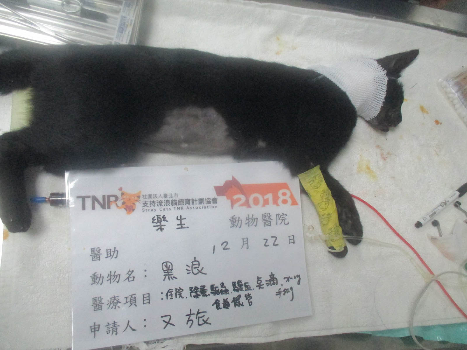 1/11號已由本人接回家裡安置+餵藥,待至少兩週後才能將下顎的固定鋼絲拆除,後續視黑浪與家裡的相處情況再決定是否收編或結紮後原放。