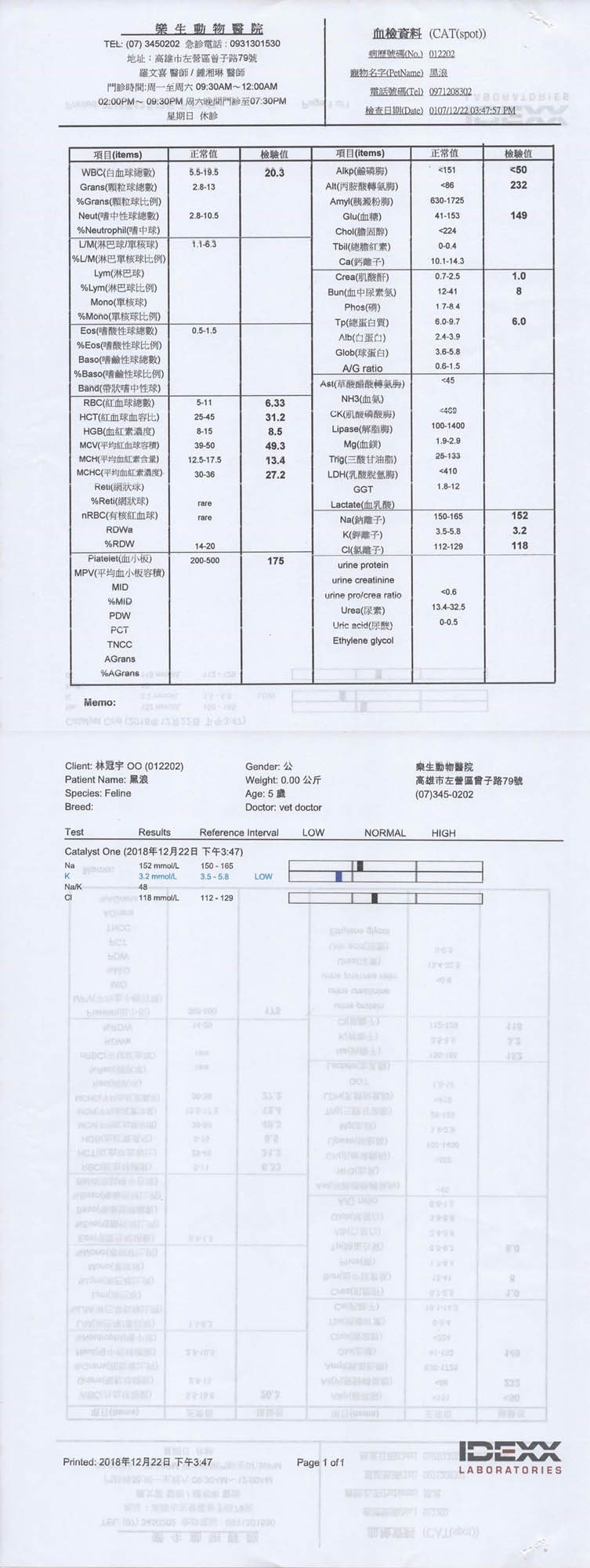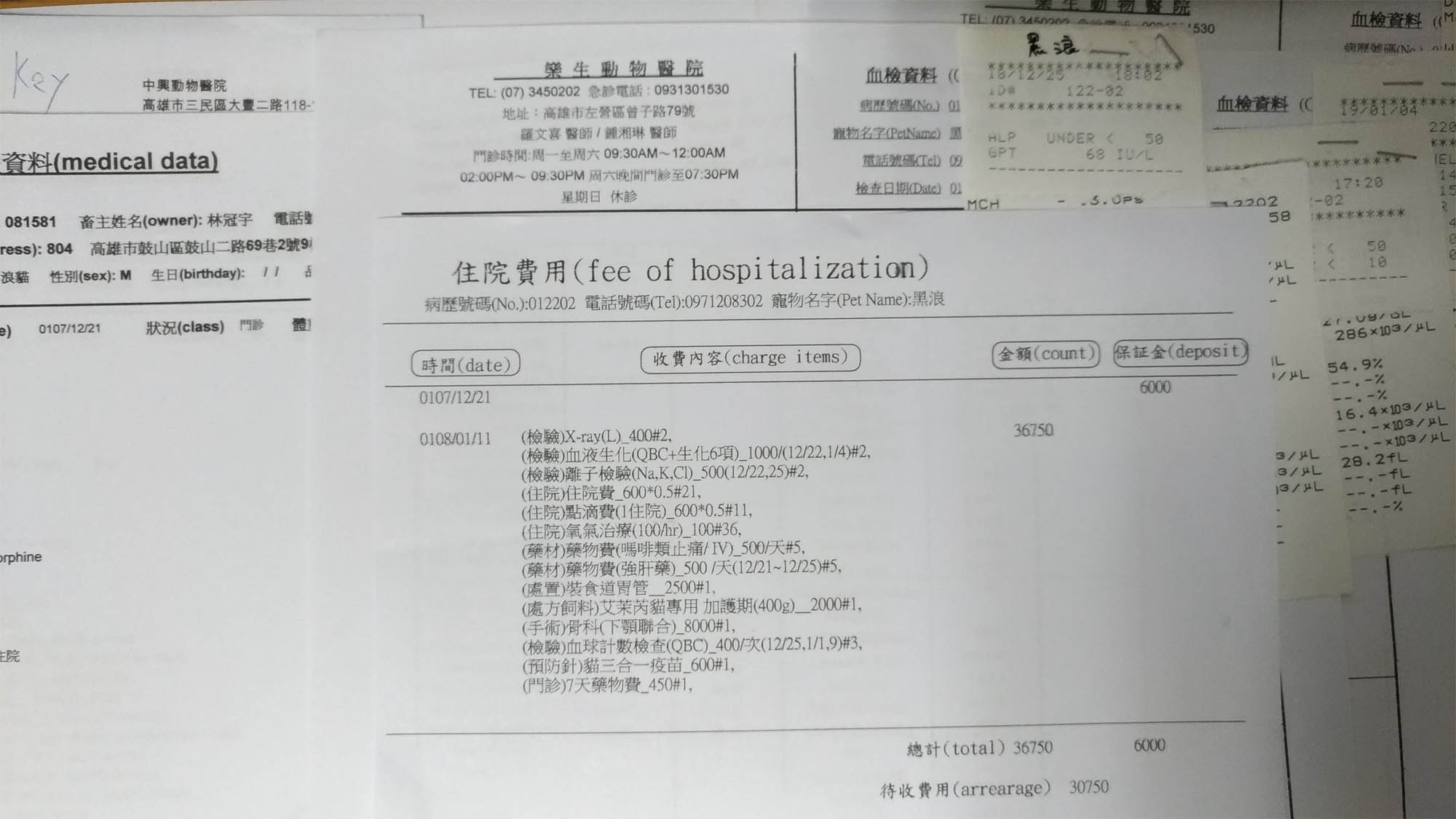 下午轉診至樂生動物醫院,檢查住院訂金$6000
