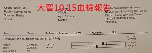 半年前大智當捐血小英雄時有順便做血檢,發現腎指數偏高,因此醫生希望協會能提供大量的水分給大智並於數月後回診追蹤,此筆醫療費就是大智回沐恩動物醫院做健檢的醫療費用,請大家幫幫捐血小英雄,謝謝。