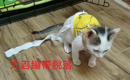 因一晚照護員發現大吉的繃帶後端有點脫落,詢問過醫生後先將脫落的部分剪掉,今日早上再回院調整。