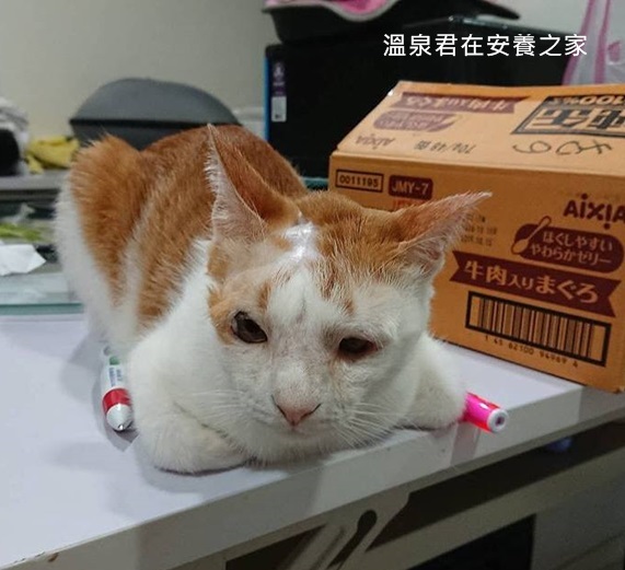 溫泉君每日按時吃心臟藥,照護員也每天早晚測量記錄他的呼吸心跳,現在狀況穩定,溫泉君是非常聰明機靈的小調皮,不但會開籠門經常在夜間越獄,還會認得誰是新進人員,每有新進人員就會跳到人家背上,像是在給下馬威似的,各種調皮花招超逗趣,平日很喜歡到陽台曬太陽,模樣極為可愛,大家都好疼愛他,希望溫泉君能一直平安健康。