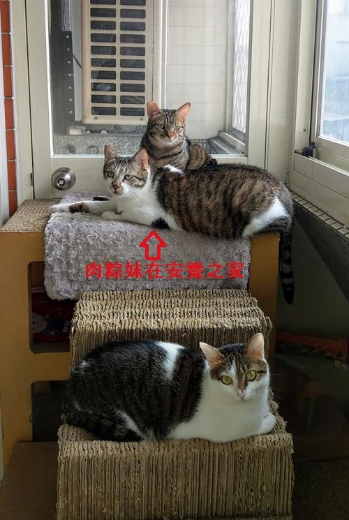 雖然右下犬齒脫落,但一點都不影響肉粽妹的生活起居,現在每天還是開心的跟室友們一同爬高高看風景。