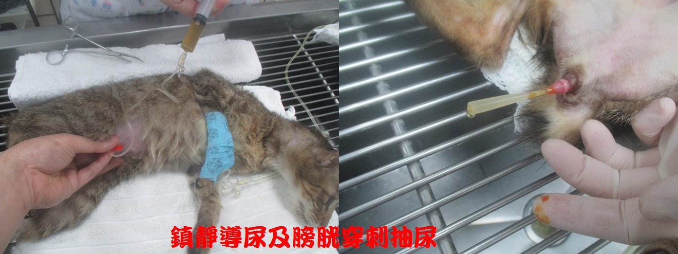 貓咪入院時 醫院先鎮靜導尿放置導尿管及輸液給藥,並作膀胱穿刺取尿. 還有配合氣霧治療.
