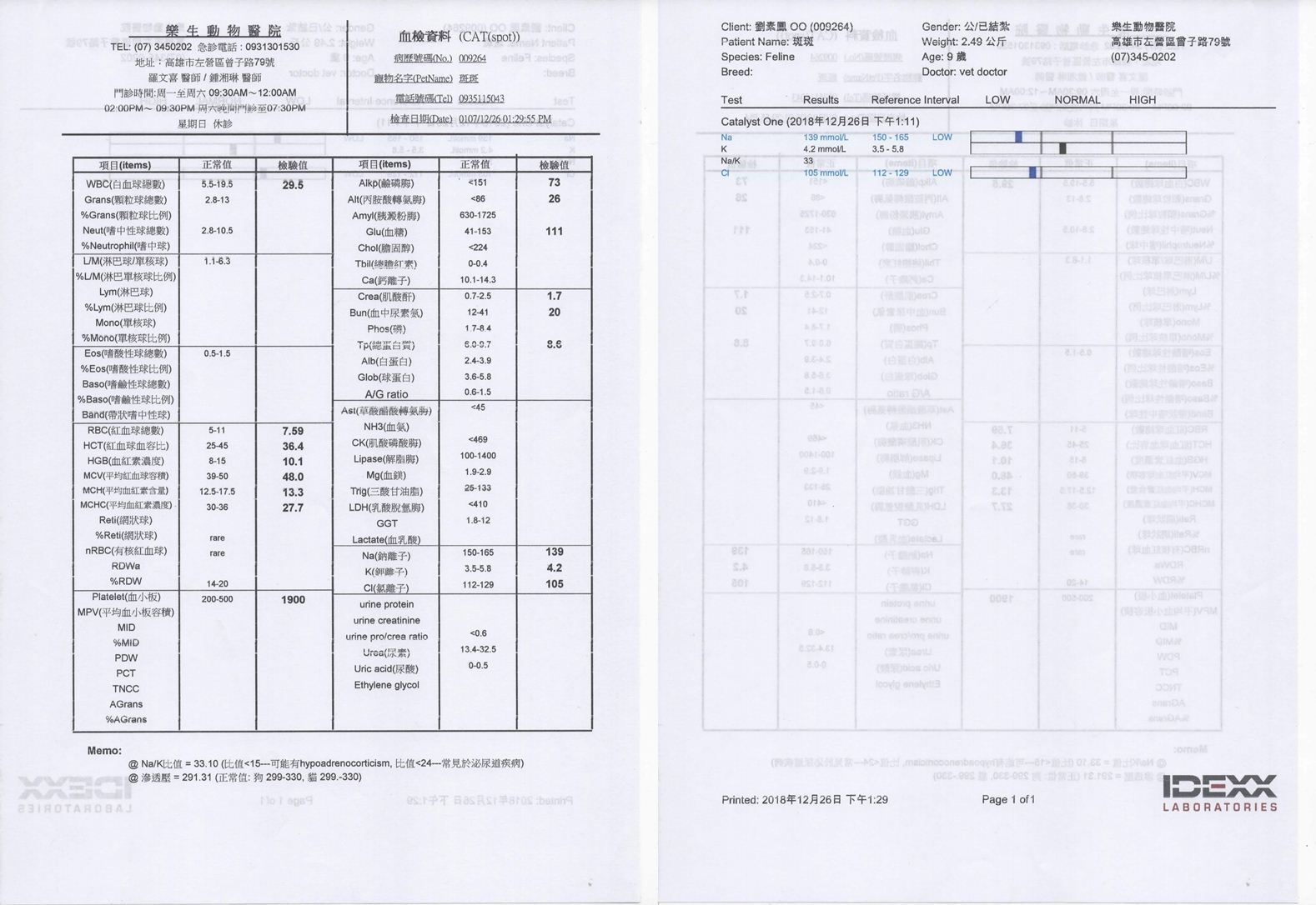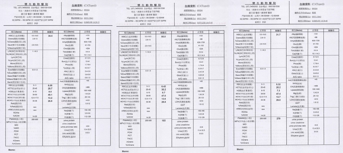 動物近況說明: 住院期間也觀察貓咪的狀況和血液監控看看貓咪復原的狀況, 待指數狀況穩定讓貓咪出院.
