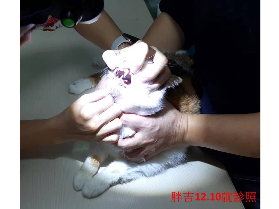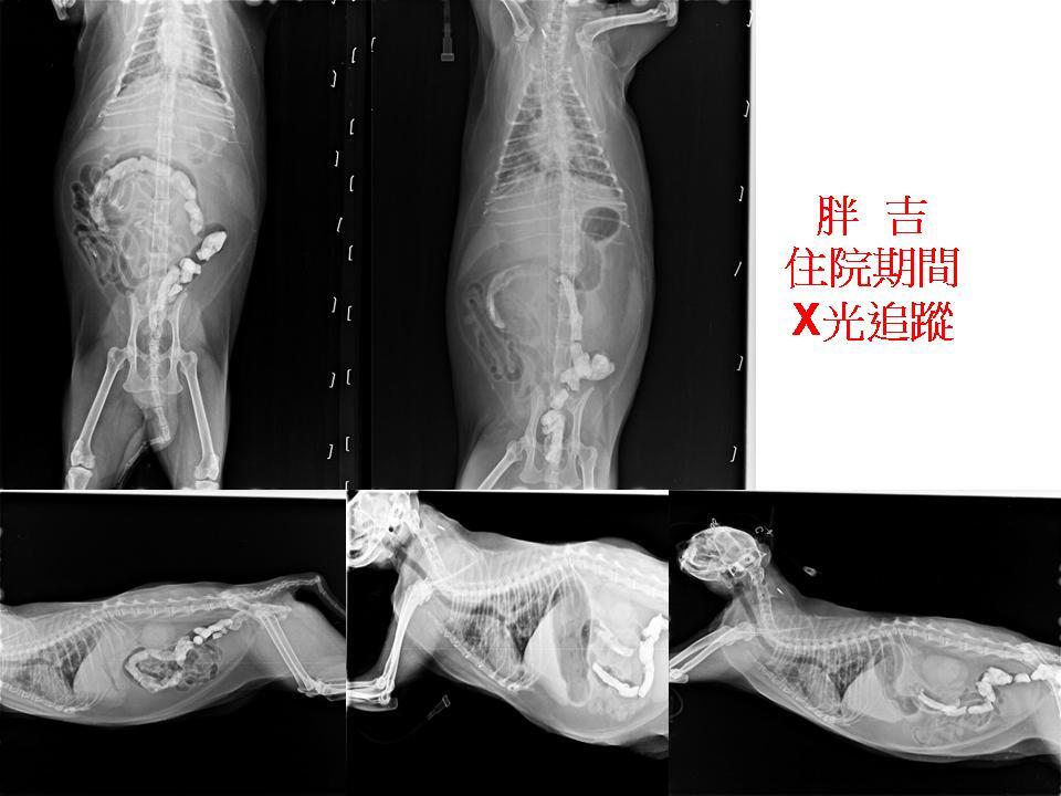 血氧檢查無得到有效結果,再進行X光拍攝,發現胖吉肺部有些白點,目前研判是肺部感染,先留院施打靜脈注射抗生素。