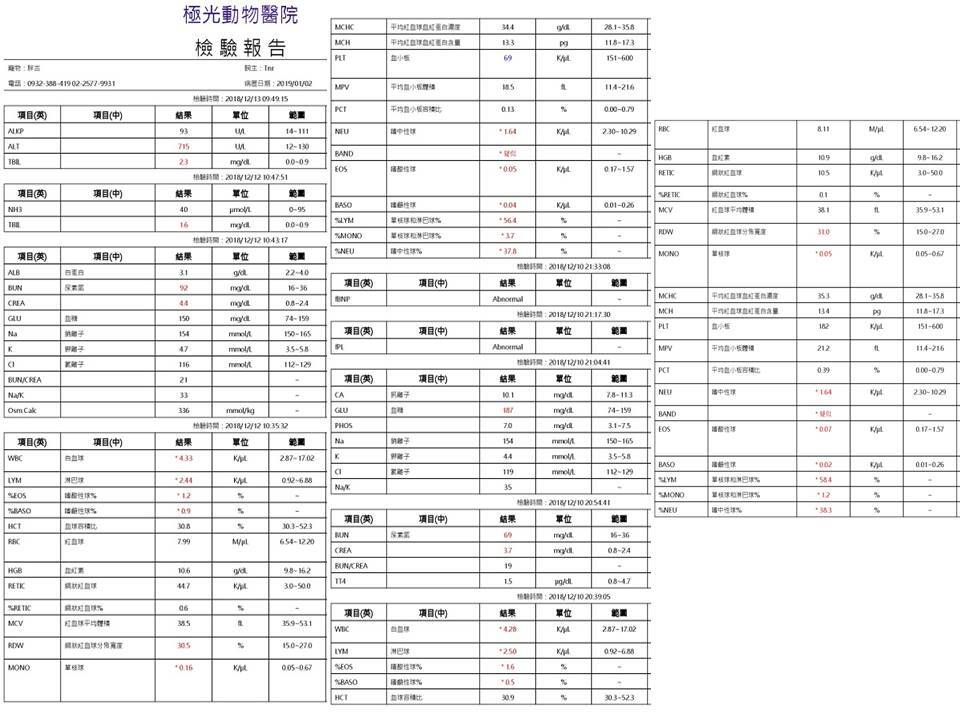 血檢腎指數Crea3.7(12/4是5.8),此指數下降也有可能是胖吉近日吃不好。