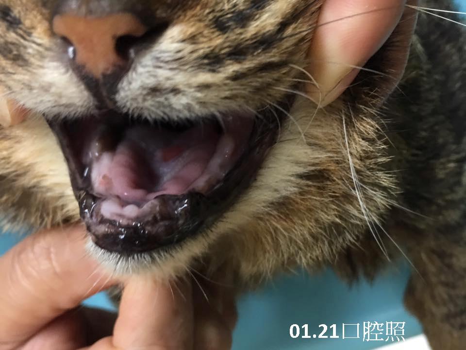 口腔檢查,今天口炎情況控制良好,舌頭的紅腫維持在0.5cm,牙齦情況良好。