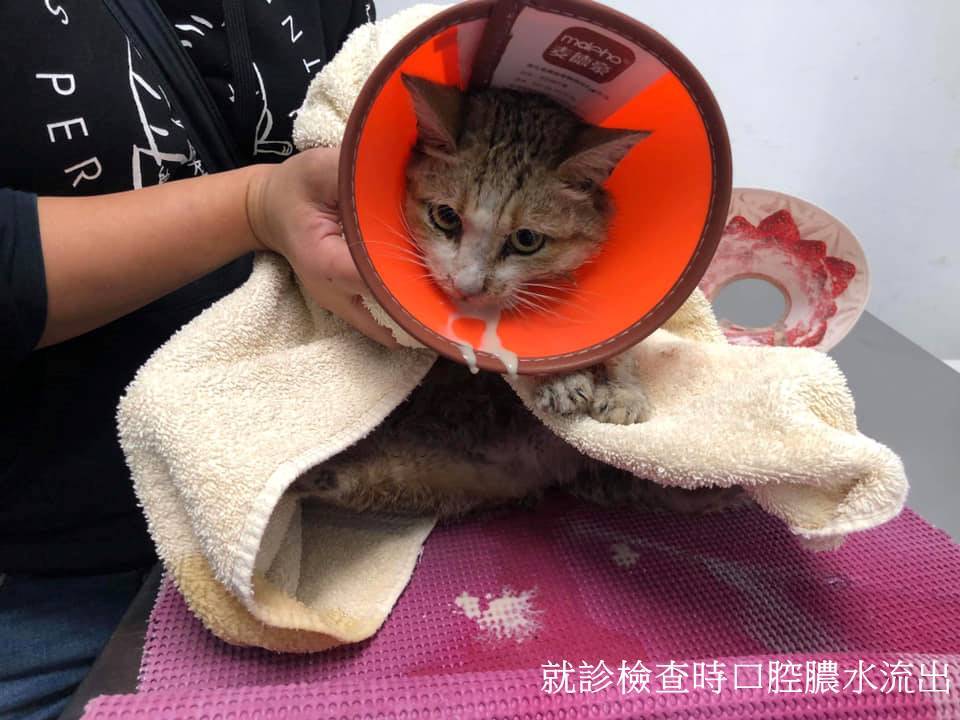 好不容易捕捉到後,進到醫院待檢查要戴頭罩時,口部的膿血已經流出,經檢查後發現是因為口腔內部後面有顆爛牙與傷口,而造成嚴重感染,但是澎皮的身體太虛弱了,所以無法麻醉清創,再加上觀察整天,不知是嘴部疼痛抑是緊張過度也都沒有主動進食,相對的血溶比數據也跟著往下掉,所以醫院也只能先給予抗生素及靜脈點滴。